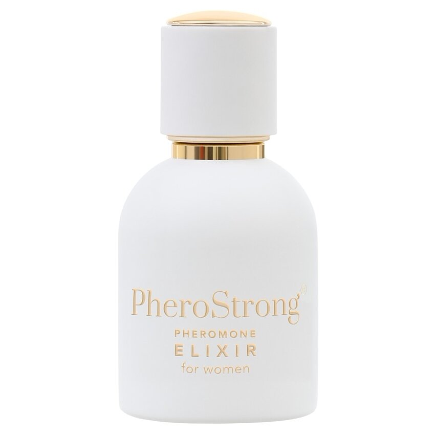 Parfum cu hormoni de atracție PheroStrong Elixir pentru femei, 50 ml. Note proaspete de portocală siciliană, lămâie şi bergamotă; inimă fructată; bază caldă de mosc alb, chihlimbar şi vanilie Madagascar. Formula discretă, pentru uz extern — aplicare pe încheieturi, gât, în spatele urechilor.
