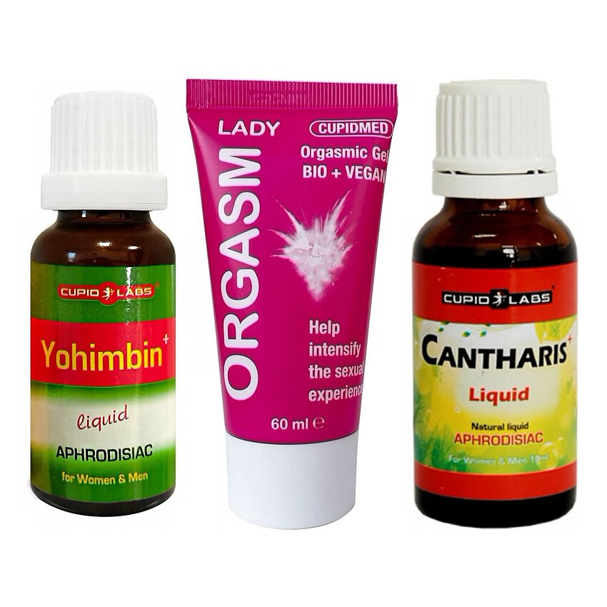 Detalii despre produse: - Gel Plăcere sexuală maximă Lady (60 ml): combinație hipoalergenică, minus parfum, conceput pentru creșterea sensibilității și senzații de furnicături/încălzire; textură adecvată pentru frecție preludiu, compatibil cu majoritatea lubrifianților. - Picături Cantharis Plus (20 ml): bază din extracte vegetale, flacon cu dozator practic; doza uzuală 10–15 picături în lichid sau sub limbă, cu efect în ~30 minute; recomandat pentru ambii parteneri pentru a stimula dorința și energie. - Afrodisiac Yohimbin Drops (20 ml): extract de yohimbină, cunoscut pentru susținerea circulației și intensificarea senzațiilor; administrare 15–20 picături în apă cu 30 minute înainte, ajută vigoarea și rezistența sexuală.