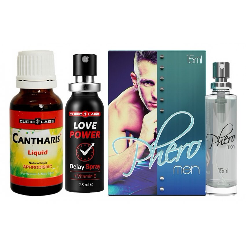 Detalii și avantaje pe produs: - Love Power Delay 25 ml (Cupid Labs): atomizator cu acțiune locală, zămislit să reducă sensibilitatea și să prelungească actul intim, perfect atunci când doriți mai mult control și satisfacție pentru ambii parteneri. - Cantharis Plus 20 ml: picături pe bază de plante, unisex, care stimulează apetitul și intensifică vigoarea generală; administrare recomandată 10–15 picături, aprox. 30 minute înainte, max. 2 sesiuni în 24 h. - PheroMen 15 ml (Cobeco): esență cu urmare seducător, potrivită pentru ieșiri și întâlniri intime; adaugă magnetismul necesar pentru a face impresie și pentru a amplifică siguranța în tine.