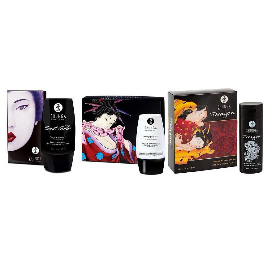 Detalii produs: - Alifie Dragon Virility (60 ml): formula pe bază de extracte reale furnizează senzații alternante de căldură și răcoare, susține erecții mai ferme și întinse și contribuie la mărirea vitalității. Textură lubrifiantă, potrivită pentru utilizare atât solo, cât și în cuplu; efecte resimțite pe durata de aproximativ 30–45 minute. - Cremă Ploaia Dragostei – stârnire punct G (30 ml): special realizată pentru aplicare internă, mărește receptivitatea zonei G și poate favoriza orgasme puternice sau ejaculare feminină; include recomandări de explorare și funcționează perfect laolaltă cu jucării dedicate. - Secretul Clitorisului (30 ml): cremă de lux pentru stimularea externă, o cantitate mică e suficientă pentru a intensifica climaxul și lubrifierea; acordă efecte de încălzire și răcorire, este pe bază de apă și compatibilă cu latexul; circa 30 de aplicații per flacon.