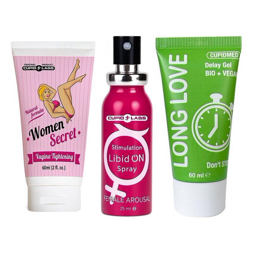 Detalii și beneficii ale fiecărui element: - Gel pentru bărbați (Long Love): formule concepută pentru întârziere controlată, sprijină menținerea erecției și sporește durata actului. Aplicare simplă, urmare vizibil în intervalul recomandat. Potrivit pentru bărbați care caută stabilitate și încredere în performanță. - Spray pentru prietene (LibidON): acțiune rapidă asupra sensibilității clitorisului, stimulează circulația locală și amplifică trăirile în timpul contactului. Dozare ușoară, se simte plăcut și intensifică feedback-ul senzorial. - Gel de strângere (Women Secret): formulă concentrată cu extracte normale (inclusiv Pueraria Mirifica) care facilitează la refacerea sensibilității și la susținerea lubrifierii naturale. Utilizare internă regulată pentru efecte vizibile și utilizare punctuală înainte de contact pentru senzație mai fermă.