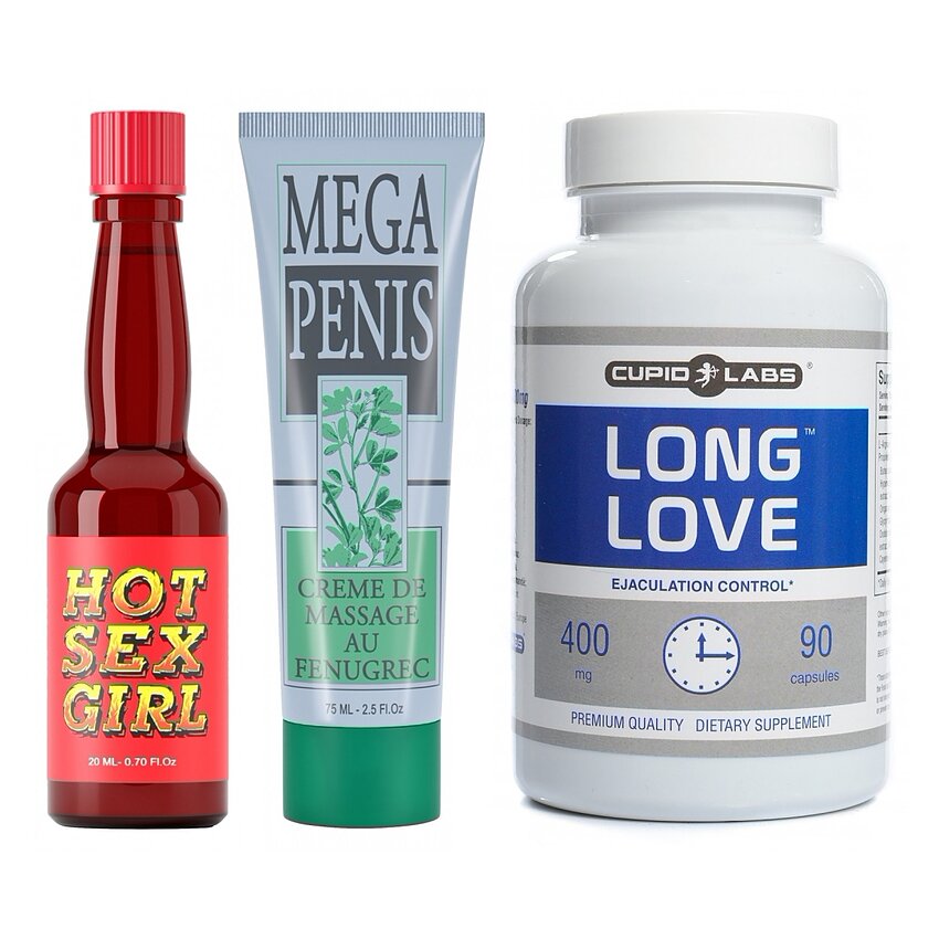 Ce aduce fiecare produs: Pilulele Long Love (90 capsule) cuprind extracte ca de exemplu Butea superbă și Tribulus terrestris, utilizate pentru a prinde controlul și rezistența sexuală, reducând anxietatea legată de ejaculare prematură. Afrodisiac Extaz Al Atracției Feminine (20 ml, Ruf) include ingrediente naturale — scorțișoară și măghiran — care pot stimula circulația și lubrifierea, sporind receptivitatea și dorința; administrarea atentă (maxim 20 picături/zi conform recomandării producătorului) îmbunătățește preludiul și intensitatea. Cremă Mărire Mega Membru (75 ml, Ruf) este formulată cu schinduf și melilot, ingrediente care susțin circulația locală și tonusul țesuturilor; utilizată constant, poate accentua volumul perceput și ajută la erecții mai ferme. Articolele sunt compatibile cu utilizarea altor podoabe pentru îmbunătățirea rezultatului.