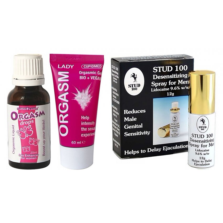 Detalii și avantaje ale fiecărui produs: - Stud 100 Spray (12 g): restrânge temporar sensibilitatea prin anestezie locală controlată, crește durata actului, concluzie în circa 5 minute, flacon suficient pentru multe pulverizări; non-toxic și folosit de masculi care doresc mai mult control. - Gel Plăcere sexuală maximă Lady (60 ml): formulă hipoalergenică, lipsit de mireasmă deranjant, potrivit cu alte produse; oferă senzații de încălzire și intensificare a contactului, textură plăcută care favorizează preludiul și stimularea focalizată. - Picături Exuberant (20 ml): combinație de plante și vitamine care susțin instinctul sexual feminin; contribuie la creșterea poftei și la obținerea unor puncte culminante mai puternice, administrare ușoară și efect treptat.