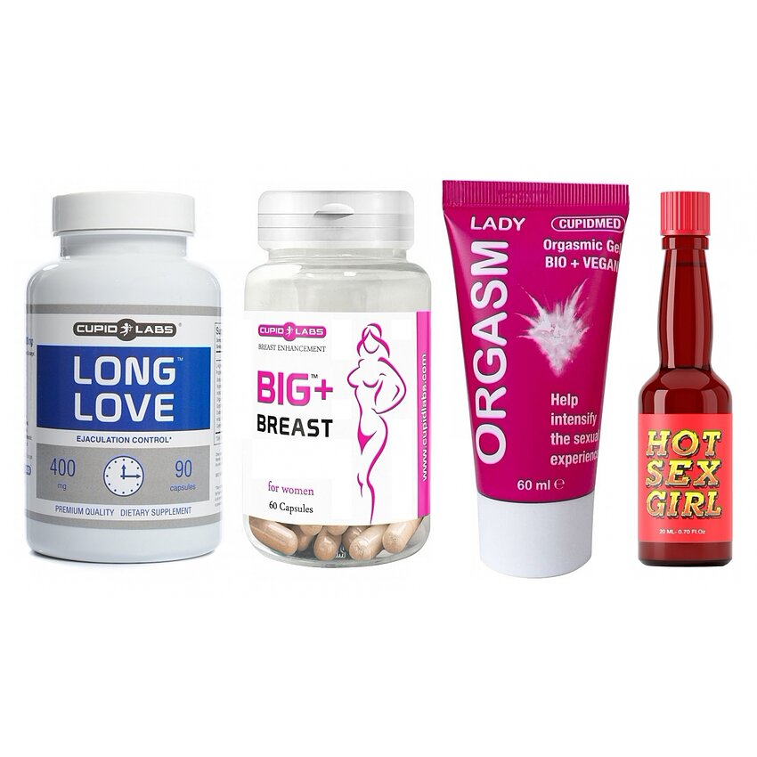 Un set complet pentru trezirea dorinţei, intensificarea senzaţiilor şi încrederea în dormitor. Pilulele susţin fermitatea sânilor, gelul amplifică excitaţia, picăturile aprind apetitul — toate pot fi folosite laolaltă pentru preludiu şi momente mai destul de lungi şi mai intense.