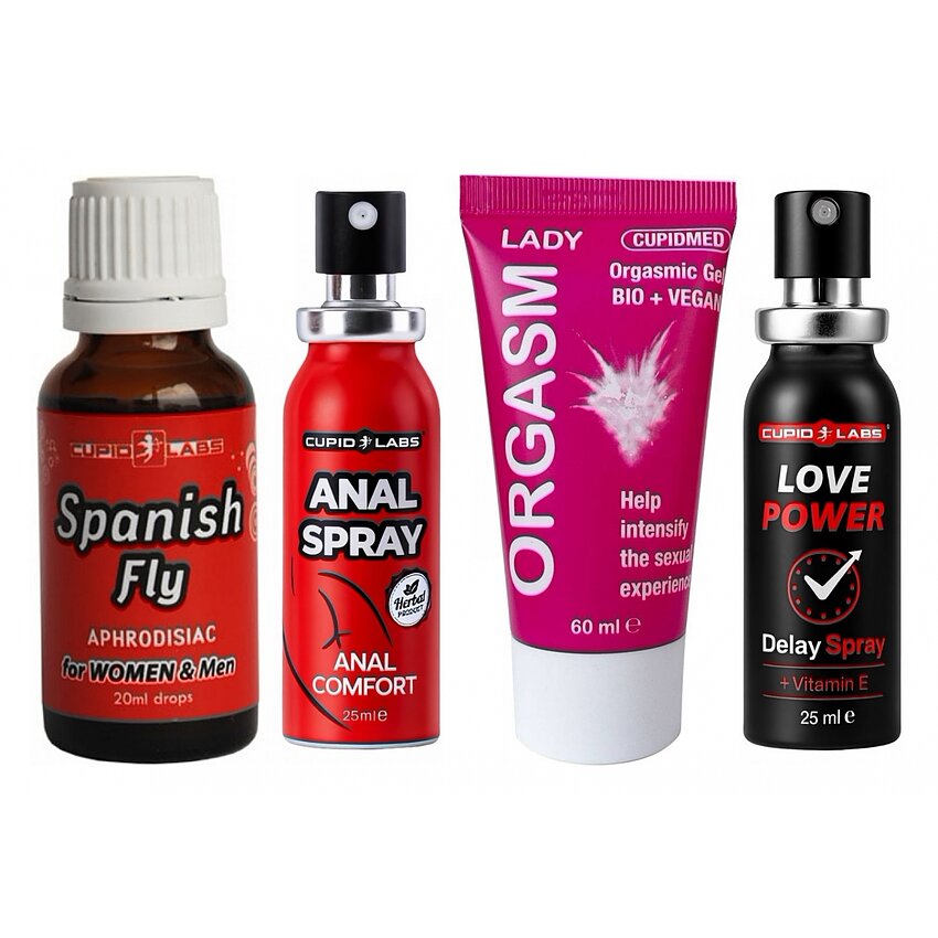 Detalii și beneficii pe produs: - Atomizator Ejaculare Precoce Love Power Delay (25 ml): reduce temporar sensibilitatea, oferind mai mult control și durata dorită a întâlnirii intime. Aplicare simplă, efect rapid — pentru mai multă încredere în pat. - Spray Desensibilizator Anal Cupid Labs (25 ml): formulează relaxarea mușchilor de la nivelul anusului pentru o pătrundere mai lină și mai puțin disconfort, permițând explorarea anală în condiții mai plăcute. - Gel Mărirea Libidoului Plăcere sexuală maximă Lady (60 ml): textură delicată, hipoalergenică și excluzând parfum, creează trăiri de încălzire și intensifică receptivitatea zonelor erogene, susținând orgasmul și apropierea emoțională. - Picături Afrodiziace Spanish Fly (20 ml): un stimul normal al dorinței, adresat ambelor sexe; cantități recomandate pentru concluzie în jurul a 20–30 minute înainte, amplificând provocarea senzorială a întâlnirii.