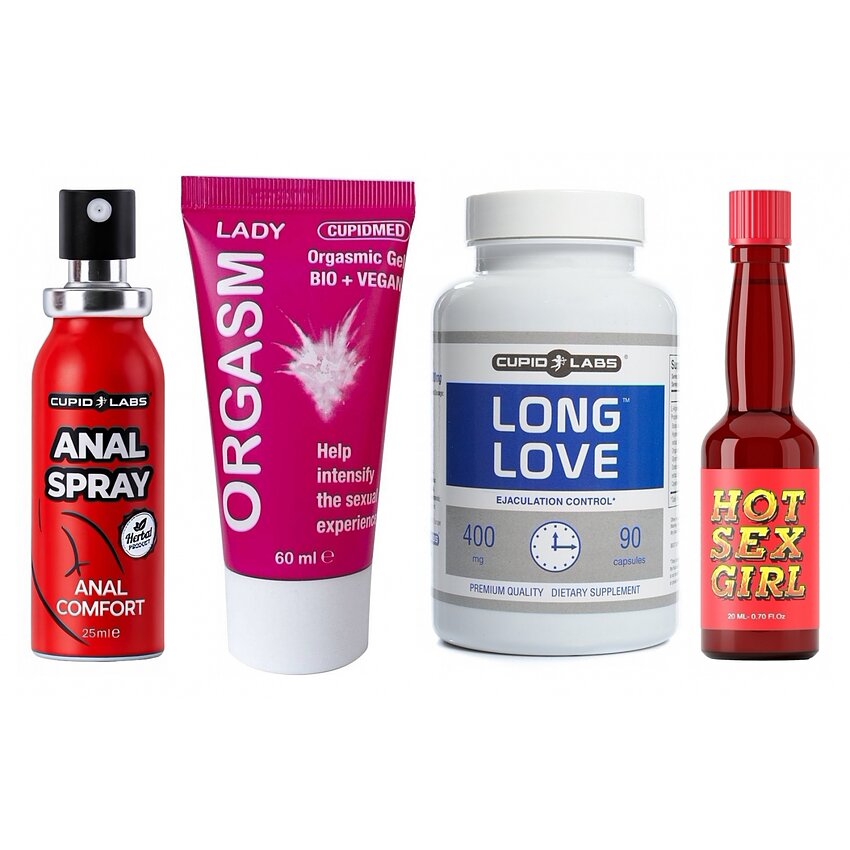 Detalii esențiale: - Tablete Long Love (90 capsule, Cupid Labs): rețetă pe bază de componente naturale, concepută pentru a prinde controlul și pentru a atenuează presiunea legată de performanță. Administrare practică, conform prospectului. - Atomizator desensibilizator anal (25 ml, Cupid Labs): acțiune rapidă, aplicare externă; sporește confortul în momentul penetrărilor anale și ajută la relaxarea zonei. Potrivit pentru cei care vor să descopere această variantă cu mai multă siguranță. - Gel Orgasm Lady (60 ml, Cupid Labs): hipoalergenic, fără parfum, oferă emoții de încălzire și creștere a sensibilității zonelor intime externe; ideal în preludiu și pentru intensificarea clipei. - Afrodiziac Extaz (20 ml, Ruf): picături care pot susține dispoziția de excitare și umezeala naturală; utilizate diluate conform instrucțiunilor, pot amplifica conexiunea emoțională și apetitul erotic.