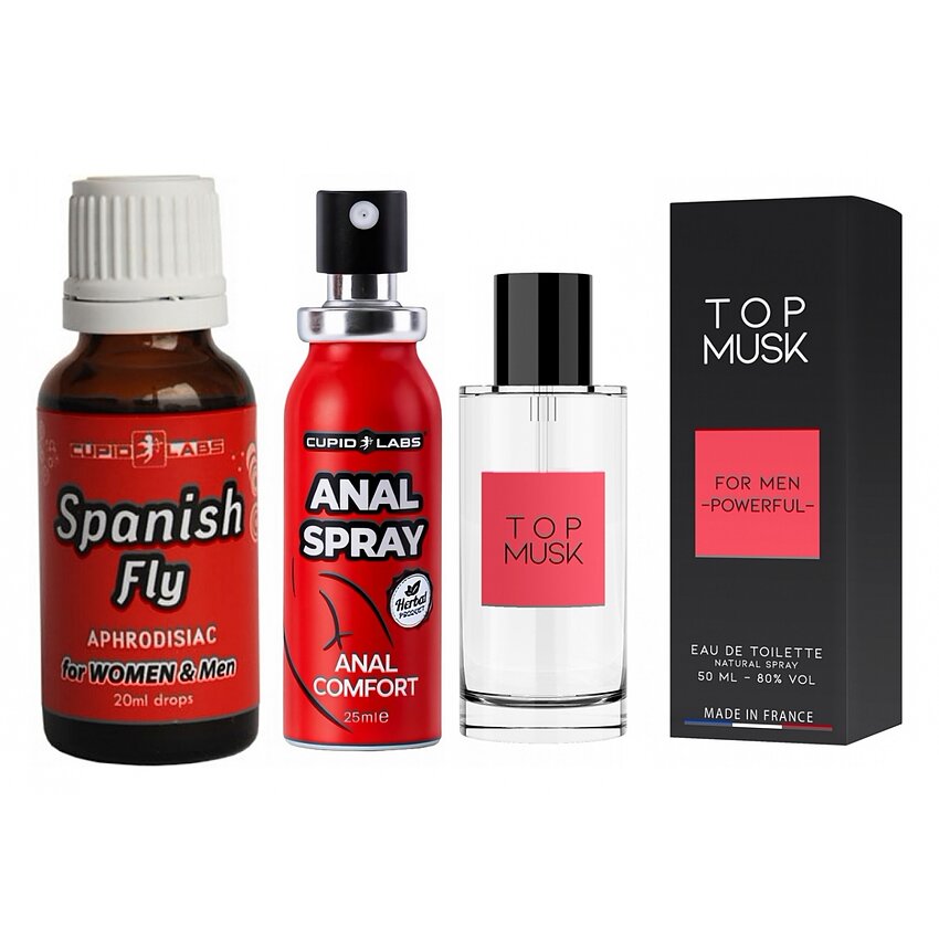Set perfect pentru serile în care vrei mai mult: fascinație instant, intensificare a dorinței și confort sporit la explorare. Spray-ul relaxează pentru penetrare mai blândă, picăturile crește libido-ul, iar esența cu hormoni de atracție atrage priviri și apropiere.