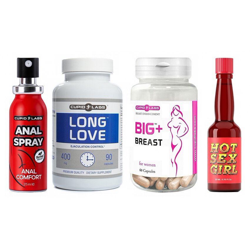 Acest colet reunește patru soluții complementare pentru a transforma intimitatea: un adaos pentru fermitate și volum, un tratament pentru controlul ejaculării, un spray pentru reducerea disconfortului anal și un afrodiziac sub înfățișare de picături pentru excitare rapidă. Folosite în combinație, conferă atât urmări imediate, cât și beneficii de durată.
