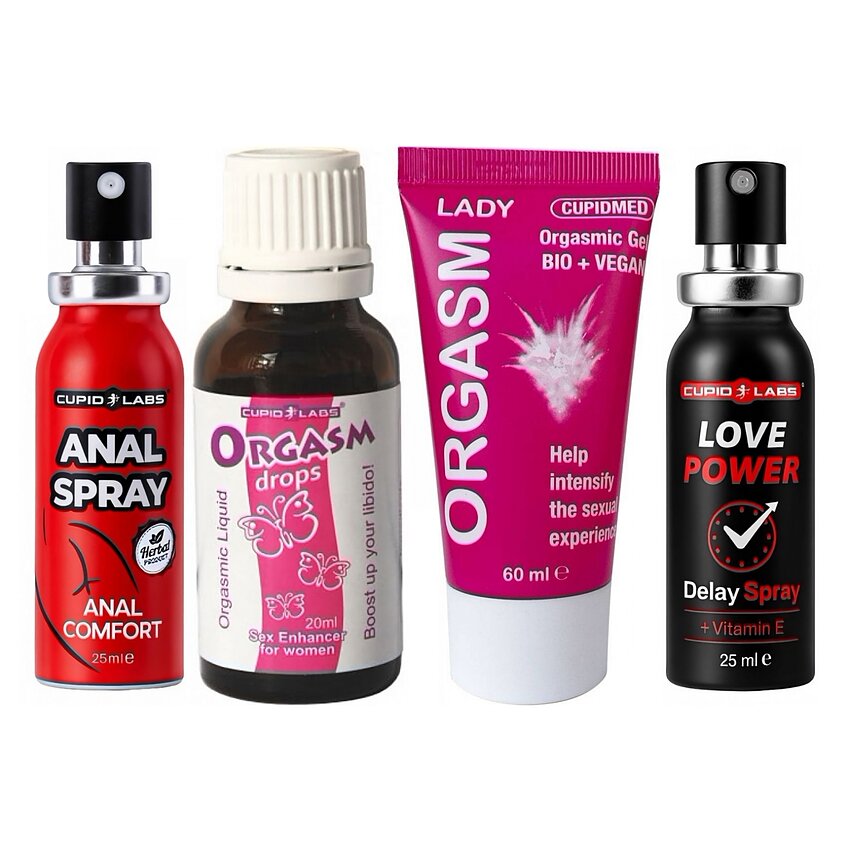 Acest pachet reunește patru soluții sinergice: un atomizator pentru amânarea ejaculării (Love Power Delay 25 ml) care prelungește timpul culminant, un spray desensibilizator anal (Cupid Labs 25 ml) pentru o penetrare mai confortabilă, un gel pentru sporirea apetitului feminin (Orgasm Lady 60 ml) ce acordă senzații de încălzire și furnicături simpatice și picături afrodisiace (Exuberant Drops 20 ml) care cresc apetitul sexual. Combinația vizează atât amplificarea plăcerii, cât și controlul și relaxarea necesare pentru explorări sigure.