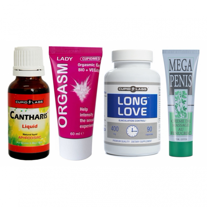 Ce aduce fiecare produs: - Capsulele Long Love: combinație pe bază de vegetale care participă la întârzierea ejaculării, sporind controlul și reducând tensiunea legată de performanță. Ambalaj mărinimos pentru o întrebuințare continuă și discreție în rutină. - Gel Plăcere sexuală maximă Lady: flacon compact cu textură plăcută, hipoalergenic și fără parfum; crește sensibilitatea zonelor erogene, oferind căldură și furnicături care amplifică excitarea și intensifică momentele intime. - Picăturile Cantharis: concentrat natural, destinat ambelor sexe, care declanșează o dezvoltare a dorinței și energiei; concluzie rapid dacă se administrează înainte de apropiere. Variantă practică pentru serile în care vreți să treziți apetitul sexual. - Alifie Mega Penis: formulă cu extracte ca de pildă schinduf și melilot care stimulează circulaţia locală, oferind senzație de plenitudine și sprijin pentru erecții mai ferme; eficiența crește prin aplicare continuă și poate fi completată cu dispozitive pentru efecte vizibile.